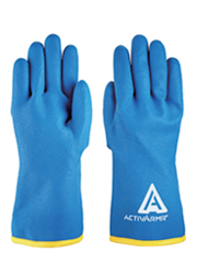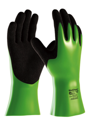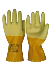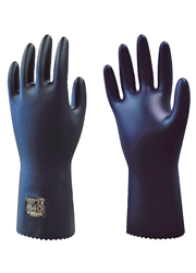 耐藥品、耐溶劑手套 於處理化學物質的作業中配戴,可有效的抗油、抗酸和鹼,延緩化學物質對手套的腐蝕。 |
